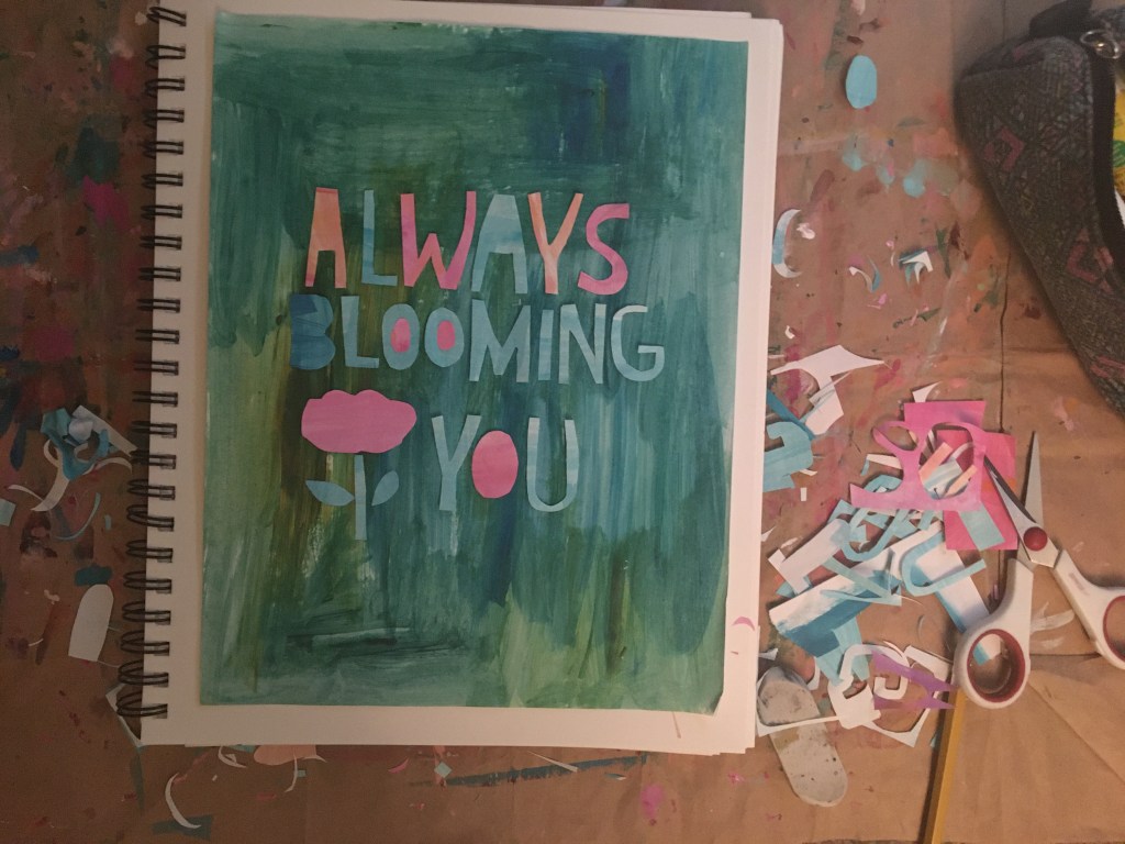 These letters aren’t perfect. I did use a pencil to draw a few of the letters but mostly just cut. Good letters. Good color scheme. Nature you’re always cheering me on. Thank you to the fan who posted the words, you’ve got skills. When I was done cutting and pasting, your words came to mind. Not that I’m boasting, but I do have skills. I’m going to keep going and keep creating. In the words of Tabitha Brown, it’s my business.
