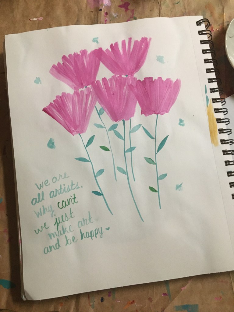 Then I came home and got to work on my art. What a day. These pink flowers say it all. It was wonderful to take a break from it all and just paint.