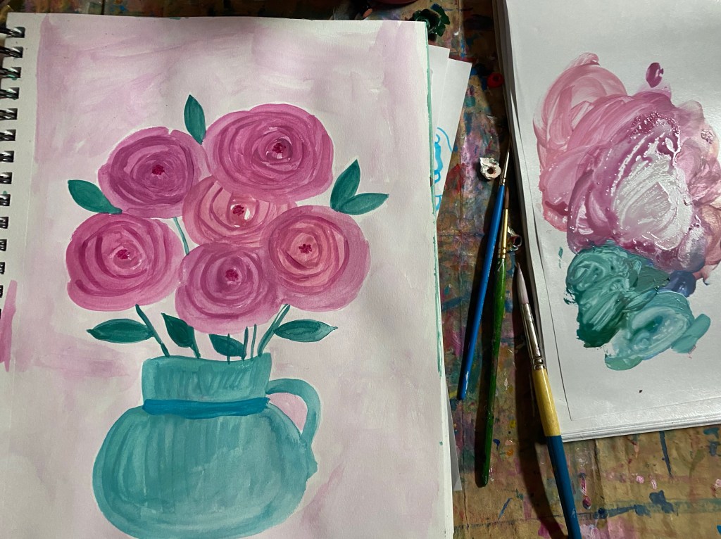 I got dressed this morning in a pink floral blouse and a pearl-like necklace. As I put on a neutral pink lip gloss I wondered. What will I wear tomorrow and the day after that? Shouldn’t I always enjoy the day no matter the season or festive day? Ok, we can’t always go home with a huge envelope of treats and cards. But we can choose love every day! Valentine’s Day is about love, right? Who assigned love to the heart shape as we know it anyway? These are the thoughts that sometimes boggle my mind. Anyway, today I want to kick off the start of something wonderful. I have been doing sketches and although crayons are fun, it’s not the same as making a mess. I love the color mixing I’ve been doing. In the words of Lizzo, “It’s about time!” Thank you for being a fan. Thank you for being a teacher. I recently opened up comments. Your kind words have been amazing! Thank you my blooming beauties! That’s right Creatively Hue has found a name for its fans. I have the roses project. There’s the wildflower thoughts project. I haven’t forgotten the creative exploration with paper collage course.