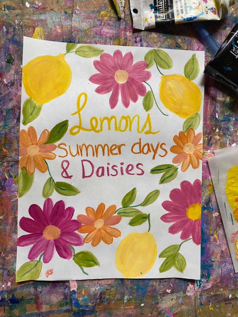 This bright summer color palette makes me think of the lazy summer days when I have time to dream and paint all day. There’s lemonade and wandering through a garden.