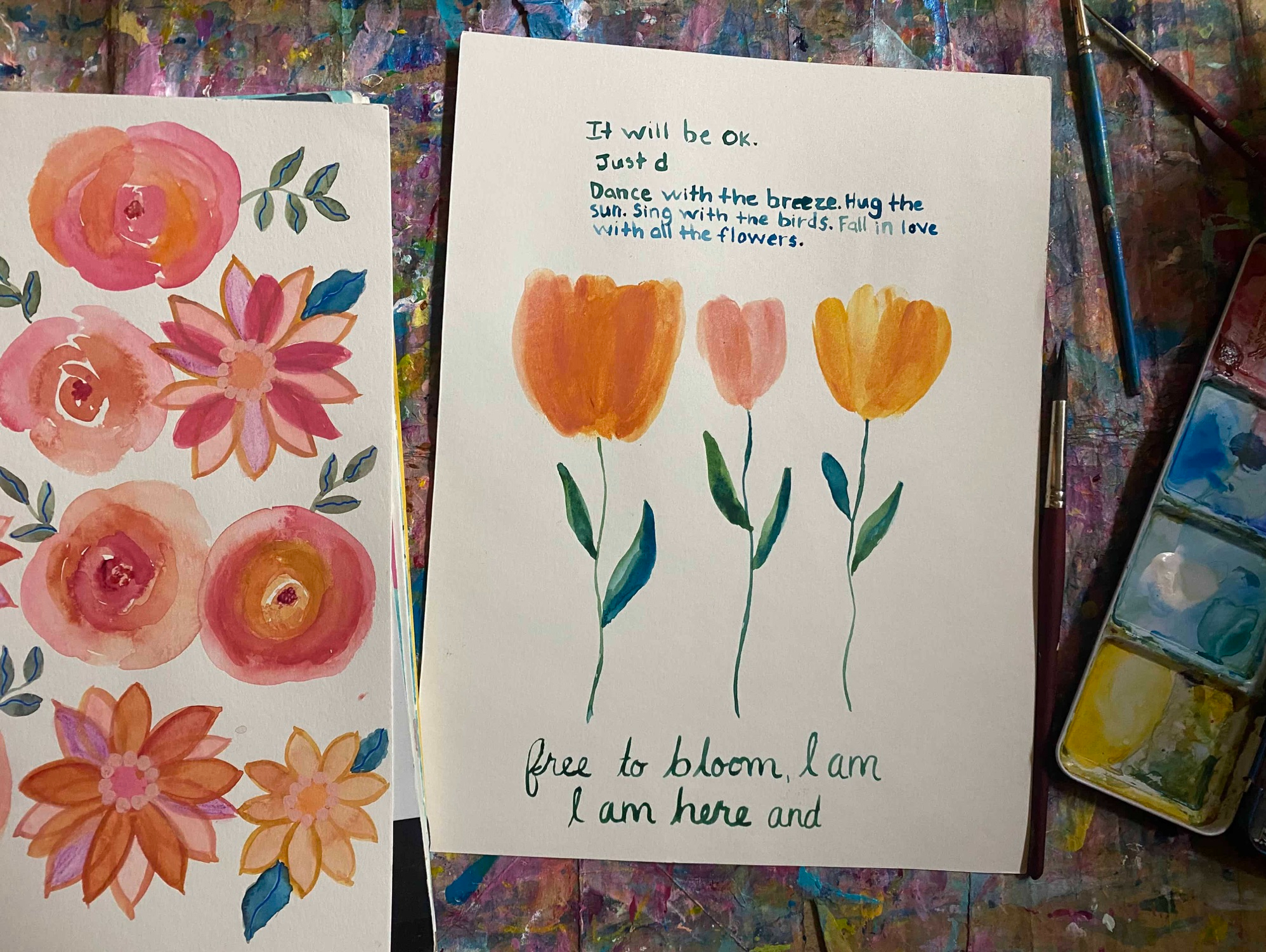 Today I simply want to say that I am an abstract flower artist. I paint flowers in all kinds of ways. I believe there is no right way to paint a flower. I hardly dress up for Halloween. Last year I was Peter Pan. This year I tried being a scarecrow and didn’t like it. I realized that I don’t have to dress up because everyone else is. I can do my own thing because as Tabitha Brown would say it’s my business!