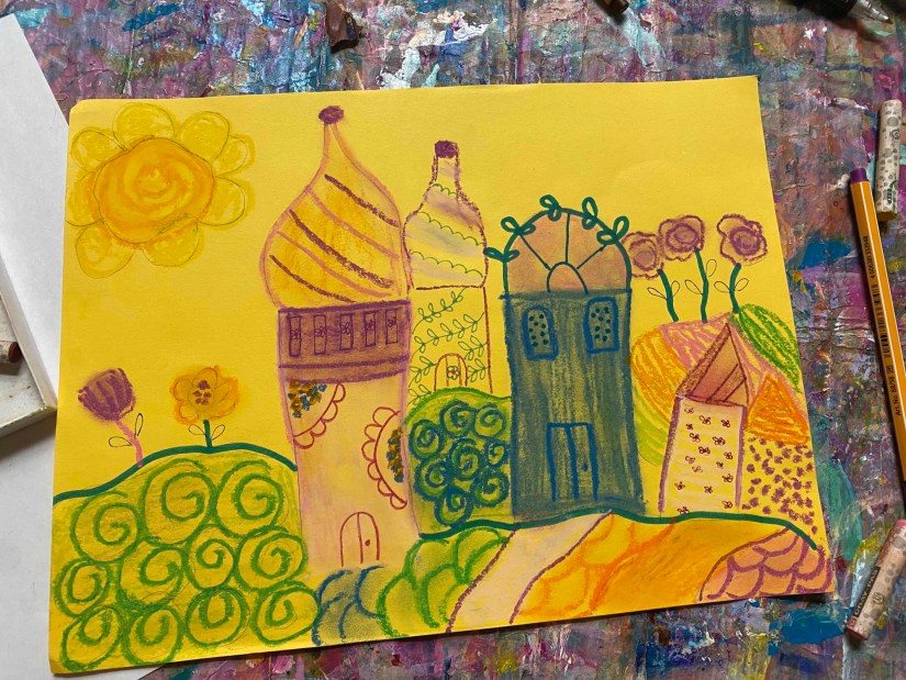 In the above project, I was thinking of flowers of course! I thought of color and exploring various tools. Yes, I had doubts but I kept working and it’s wonderful to see how it all came together.