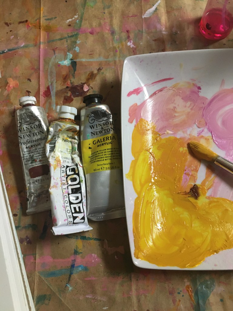 This is the title of my new project. I call every painting a project. I work on a painting for 2-3 sessions, sometimes more. I decided it would be great to create a journal book filled with the lessons that art has taught me. I will be taking the leftover paint from my projects to paint swatches. Then I’ll use pens to doodle flowers and words. That is my plan. I have more ideas. I’ll be sharing the project with you along the way.