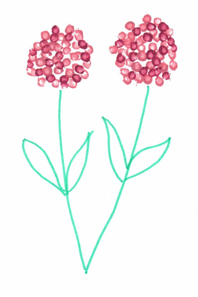 For my Q-Tips all I did was mix up pinks. I painted these flowers a while ago and for a project called There is No Right Way to Paint a Flower. Simple -Q-Tips and a bottle of acrylic paint I bought for 50 cents. I don’t use that paint anymore but it’s proof that you can create beautiful art with any tools. Wow I was in a Paper Source store and now have an idea for a pattern.
