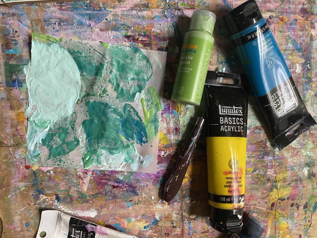 For this project I am using the following colors. I used student grade paint and a cheap craft paint. Always know that you can use student and professional grade paint to paint beautiful flowers.