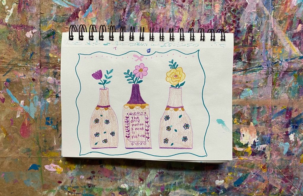 I have been into my journaling time and am excited to add new art to my portfolio. Art has helped me reflect and have peace. There is something about picking up a paint brush, and going through my supplies, the colors and watching the idea bloom before my eyes gives me peace. I have to paint! The only potion I need is nature, so I paint it!