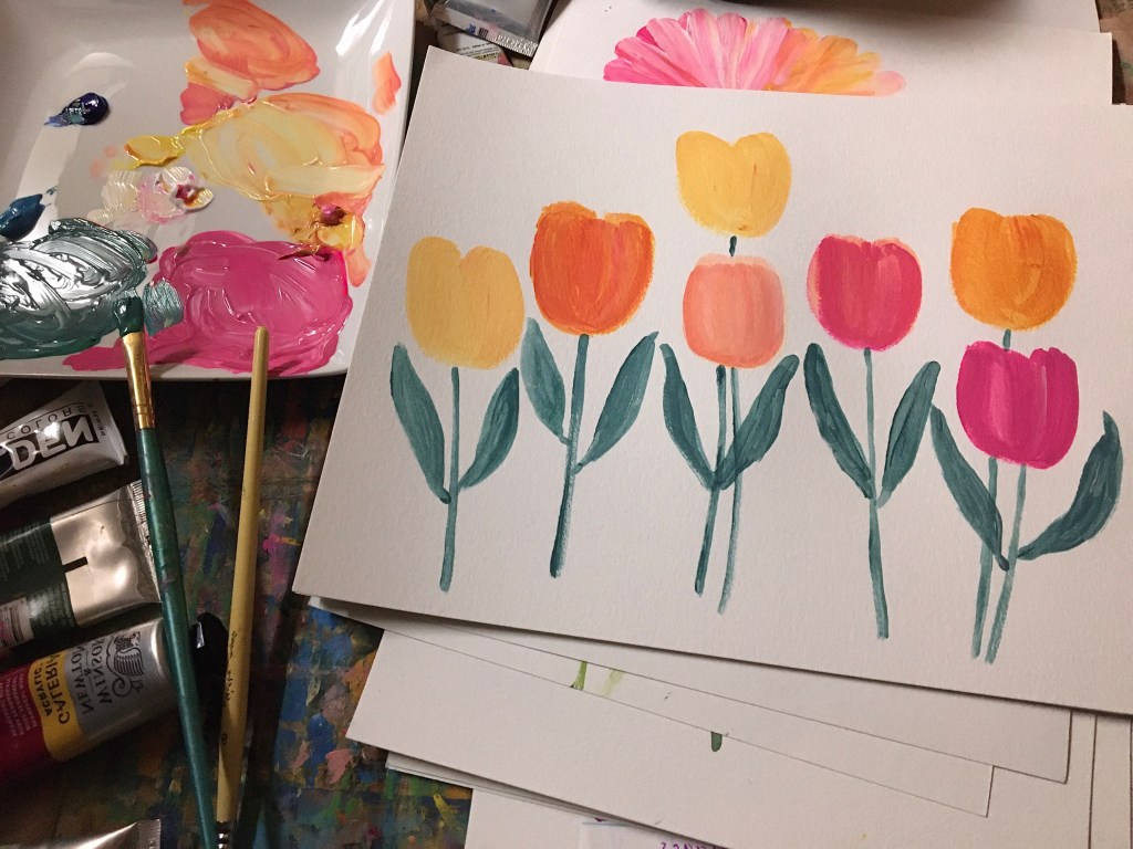 I painted these tulips a long time ago, well maybe not that long ago. I was just mixing colors, beautiful colors! This weekend I look forward to mixing colors and painting summer inspired flowers. Long summer days in the garden, sketching, drawing, rejuvenating my heart, mind and soul and lingering is always a wonferful breath of fresh air.