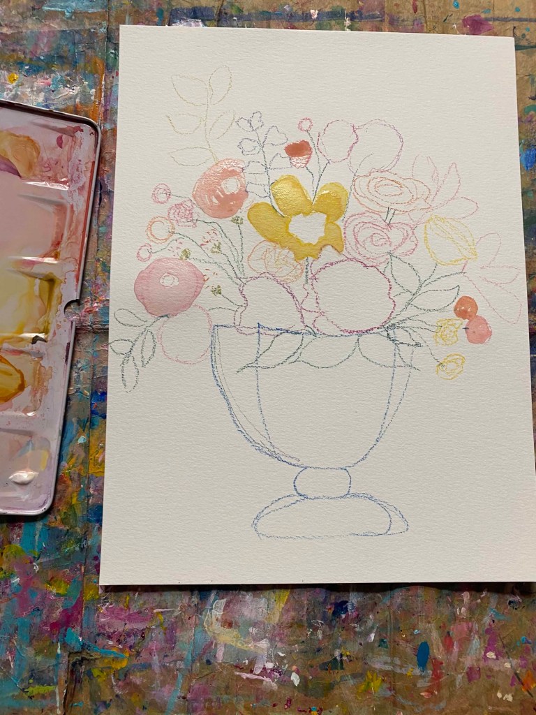 - I painted with gouache, and I loved it. I have five colors of Winsor Gouache that I didn’t use before. Here I was, painting a beautiful arrangement!