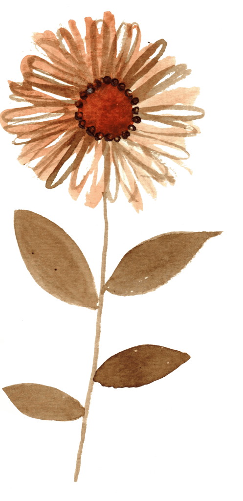 This lovely flower is no particular flower. I used like what, a size 2 brush and walnut ink with orange watercolor maybe? Walnut Ink yes. Watercolor? I think so.